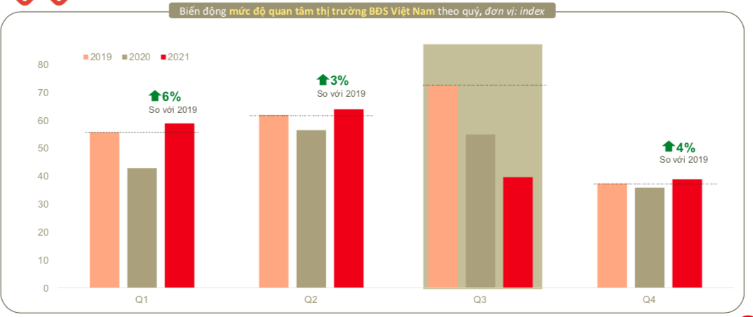Mức độ quan tâm bất động sản các quý trong năm 2021 cao hơn 2019.
